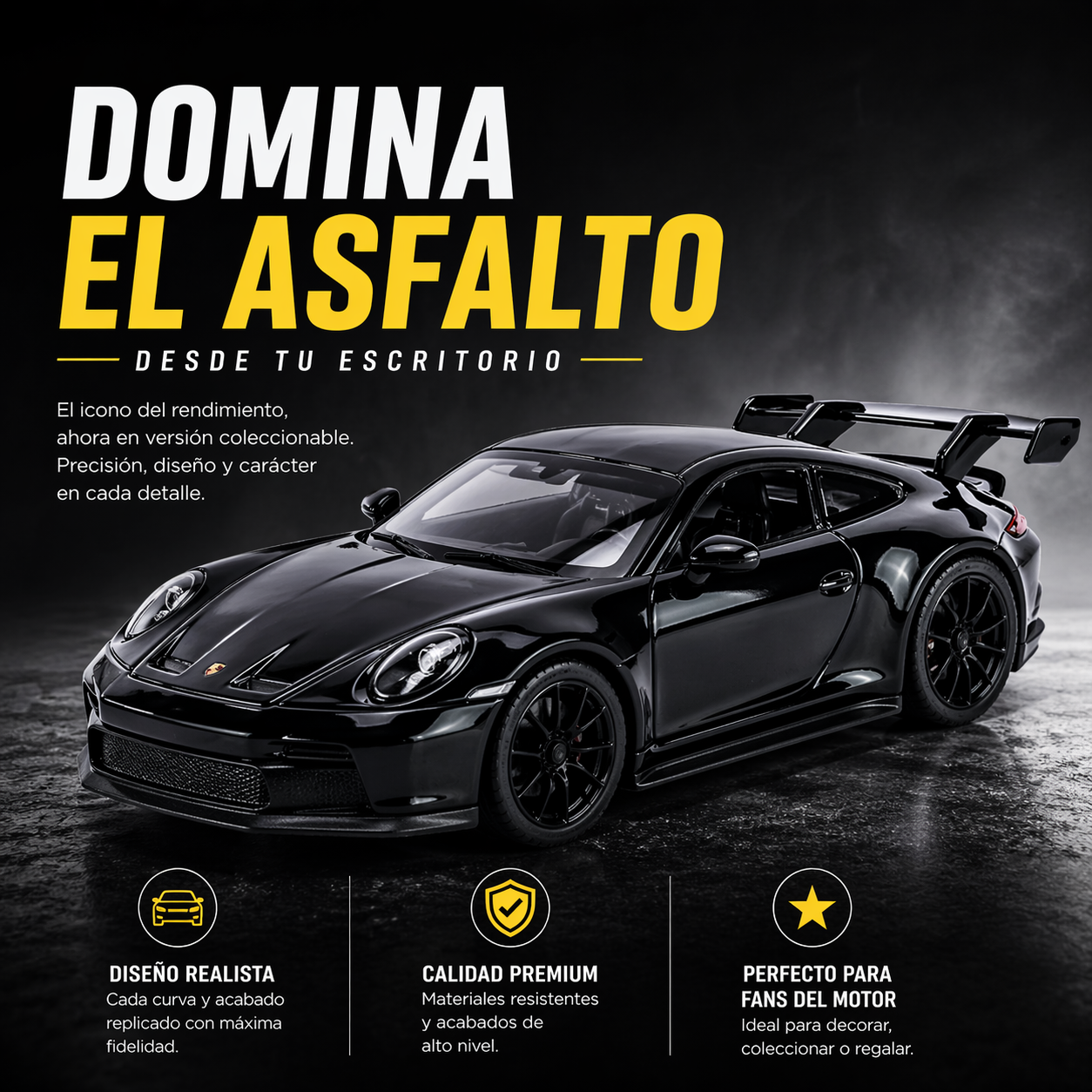 Un GT3 1:32 con detalles de metal, luces y sonido que lo hacen sentir como un auténtico coche de carreras en tus manos. no es un juguete normal.